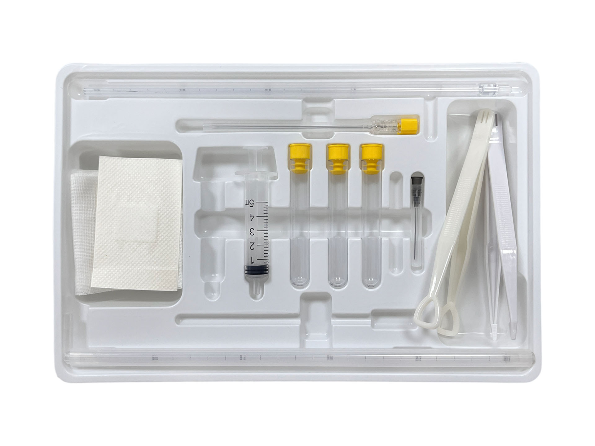 一次性使用腦壓包基本配置由腦壓管、腰椎穿刺用針組成。選用配置由一次性使用無菌注射器、一次性使用無菌注射針、橡膠醫(yī)用手套、脫脂紗布疊片、棉球、膠帶/膠貼、塑料鑷子、試管(帶塞)、手術巾(洞巾)、敷料巾(包布)、器械盤組成。產品經環(huán)氧乙烷滅菌,為一次性使用。