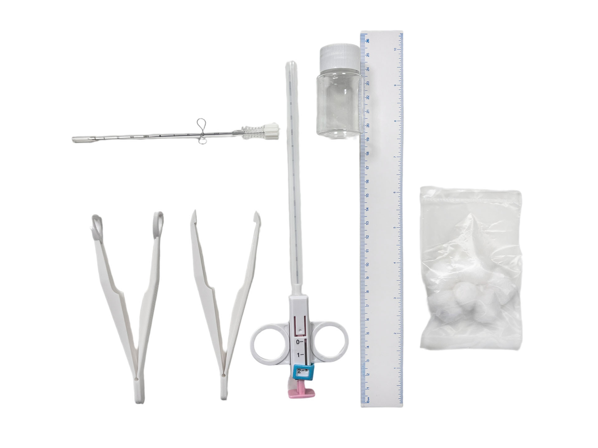 一次性使用活檢針及附件基本配置為活檢針。選用配置由橡膠醫(yī)用手套、脫脂紗布疊片、棉球、膠帶/膠貼、塑料鑷子、試管(帶塞)、換藥盒、紙尺、試管架、手術(shù)巾(洞巾)、敷料巾(包布)、器械盤組成。該產(chǎn)品已無菌狀態(tài)提供,經(jīng)環(huán)氧乙烷滅菌,一次性使用。