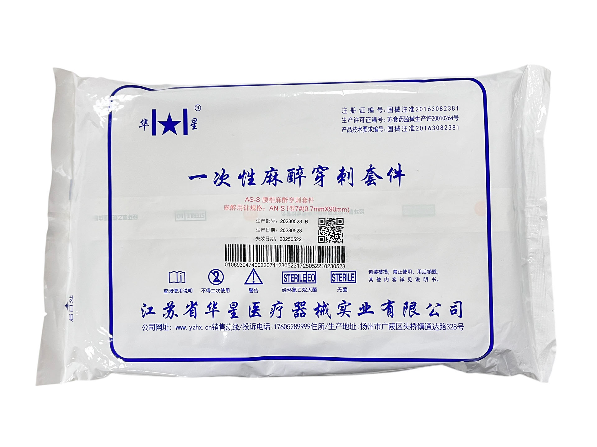 一次性麻醉穿刺套件產(chǎn)品基本配置由硬膜外穿刺針、腰椎穿刺針Ⅰ型、腰椎穿刺針Ⅱ型、神經(jīng)阻滯穿刺針、藥液過濾器、硬膜外麻醉導(dǎo)管及導(dǎo)管接頭組成。選配器械由空氣過濾器、一次性使用無菌注射器、一次性使用無菌注射針、一次性使用低阻力注射器或全玻璃注射器、導(dǎo)引針(破皮針)、負(fù)壓管、消毒液刷、橡膠醫(yī)用外科手套、敷料巾、手術(shù)巾(洞巾)、紗布疊片、創(chuàng)口貼、輸液膠貼(透氣膠貼)、導(dǎo)管固定墊、導(dǎo)管固定接頭、棉球組成。產(chǎn)品按不同的配件組合分為硬膜外麻醉穿刺套件、腰椎麻醉穿刺套件、神經(jīng)阻滯麻醉穿刺套件、Ⅰ型聯(lián)合麻醉穿刺套件、Ⅱ型聯(lián)合麻醉穿刺套件。產(chǎn)品經(jīng)環(huán)氧乙烷滅菌,為一次性使用。