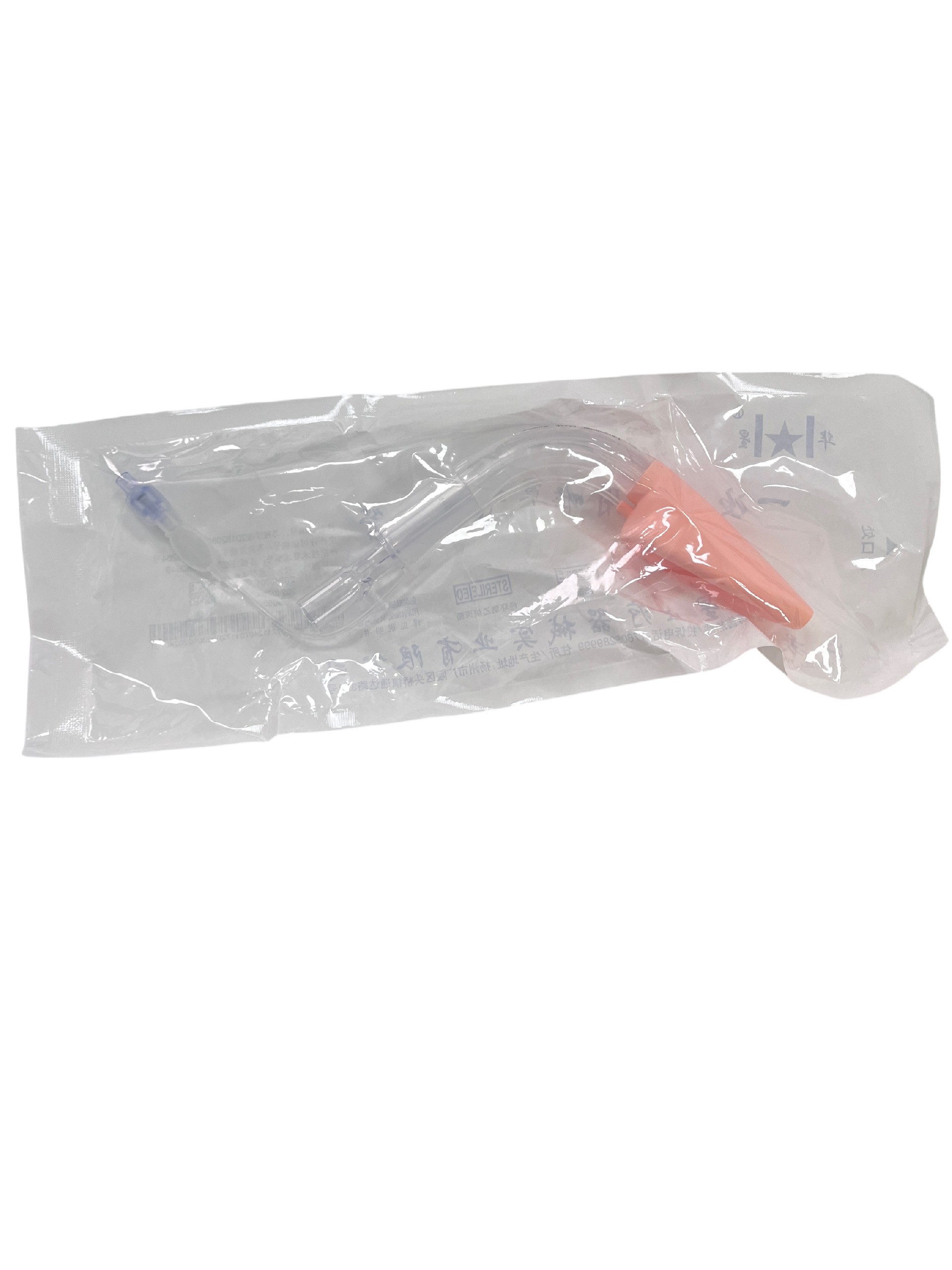 一次性使用喉罩氣道導(dǎo)管按外形結(jié)構(gòu)分為普通型、加強(qiáng)型、雙管普通型、雙管加強(qiáng)型四種類型。普通型和加強(qiáng)型由氣囊(卵圓形可充氣球囊,下同)、連接件(可沒(méi)有)、通氣管、充氣管、指示球囊、導(dǎo)引器(可沒(méi)有)、接頭及單向閥組成;雙管普通型和雙管加強(qiáng)型由氣囊、連接件(可沒(méi)有)、通氣管、充氣管、指示球囊、引流管、連接件(可沒(méi)有)、導(dǎo)引器(可沒(méi)有)、接頭及單向閥組成;加強(qiáng)型和雙管加強(qiáng)型喉罩通氣管內(nèi)壁附有不銹鋼加強(qiáng)絲。喉罩組件通氣管、引流管、氣囊、連接件、充氣管、指示氣囊等采用硅橡膠材料制成。產(chǎn)品經(jīng)環(huán)氧乙烷滅菌,無(wú)菌。