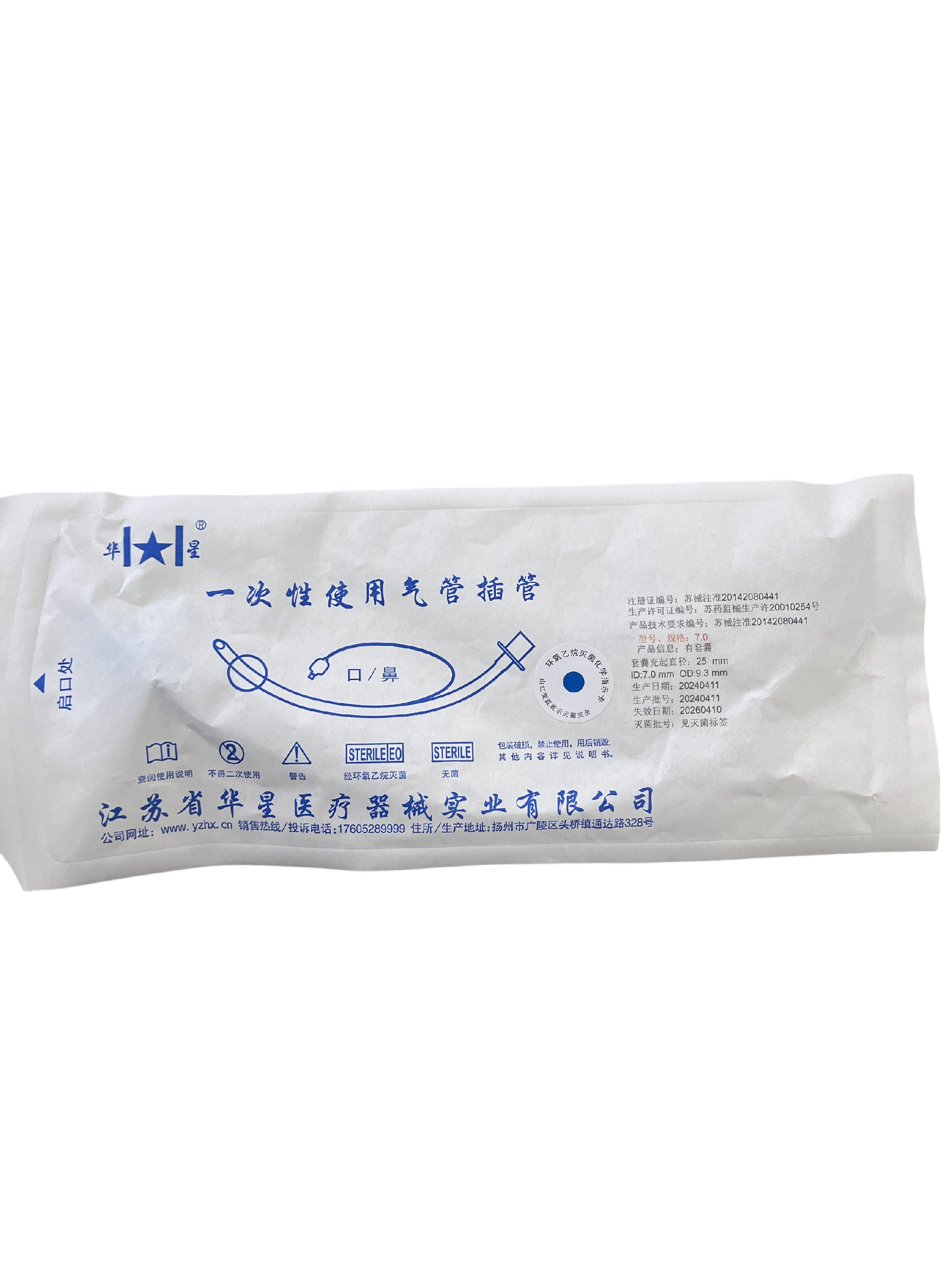 一次性使用氣管插管按結(jié)構(gòu)型式不同分為有套囊、無套囊兩種,按尺寸不同又分為若干規(guī)格。氣管插管、充氣管、套囊、指示球囊采用軟聚氯乙烯塑料制成,氣管插管接頭、單向閥采用聚丙烯專用料制成,檢測線采用軟聚氯乙烯塑料和顯影材料制成。產(chǎn)品經(jīng)環(huán)氧乙烷滅菌,應(yīng)無菌。